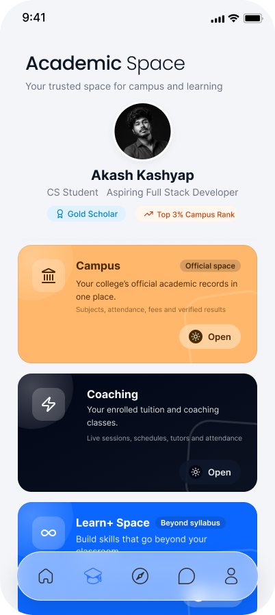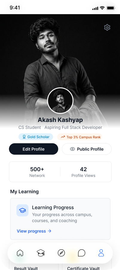 Your Unity profile is verified by your university — not self-reported. It aggregates your GPA, attendance, certifications, and achievements into a single credential that employers, collaborators, and institutions can trust instantly.